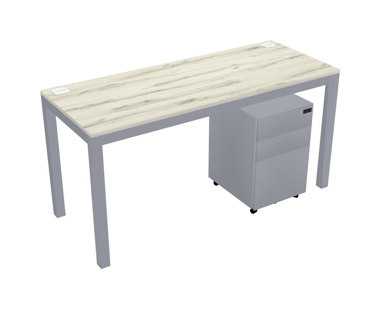 Heinne Holz Rectangular Office Desk With Metal Mobile Drawers For 1 Persons