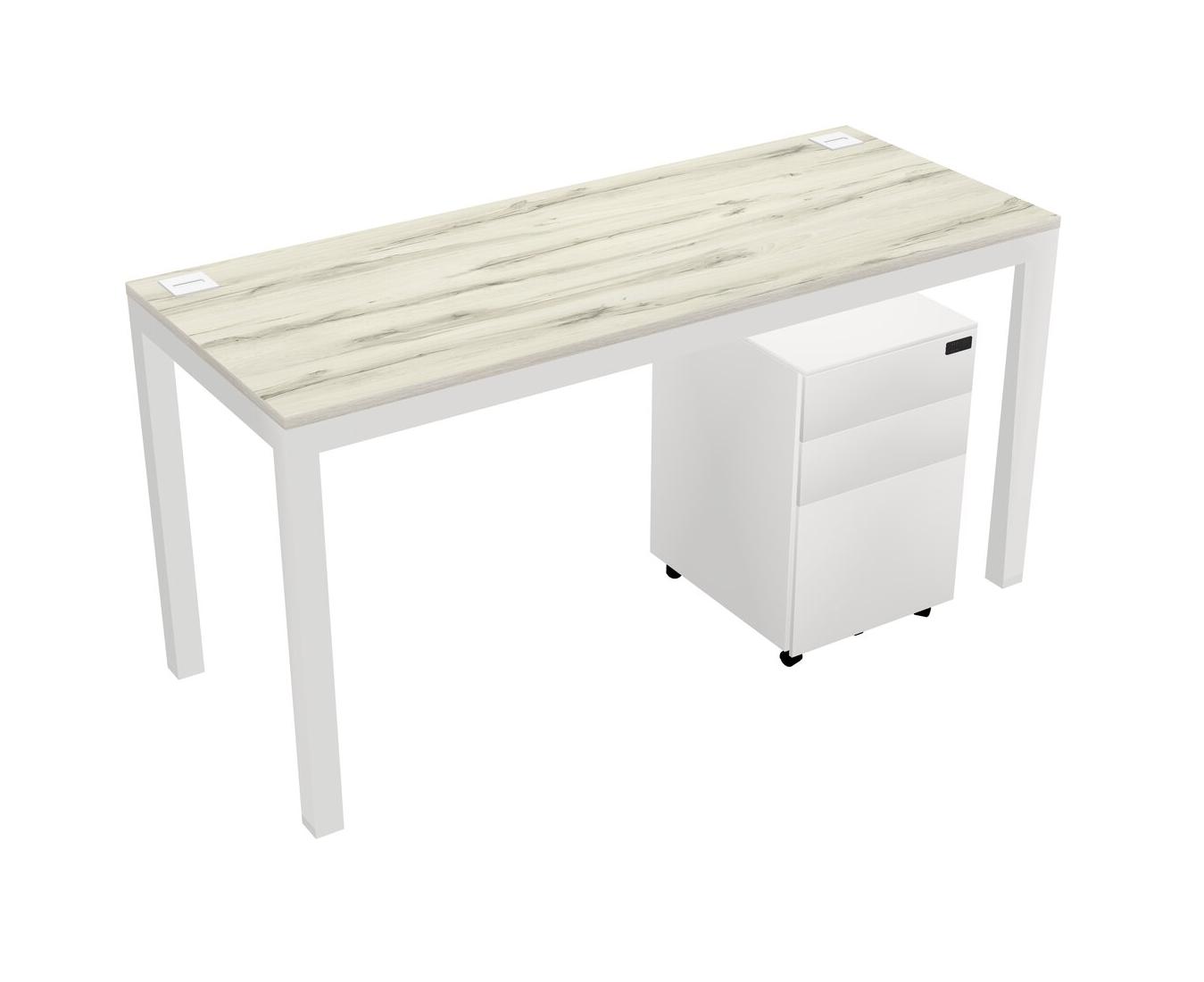 Heinne Holz Rectangular Office Desk With Metal Mobile Drawers For 1 Persons