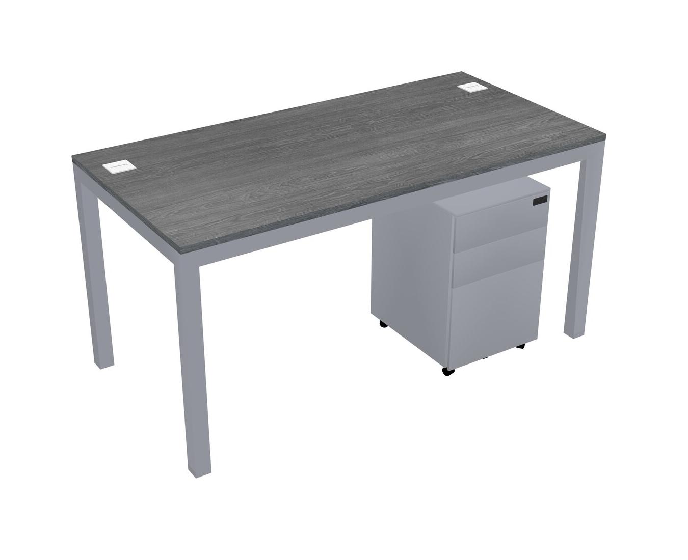Grey Rectangular Office Desk With Metal Mobile Drawers For 1 Persons