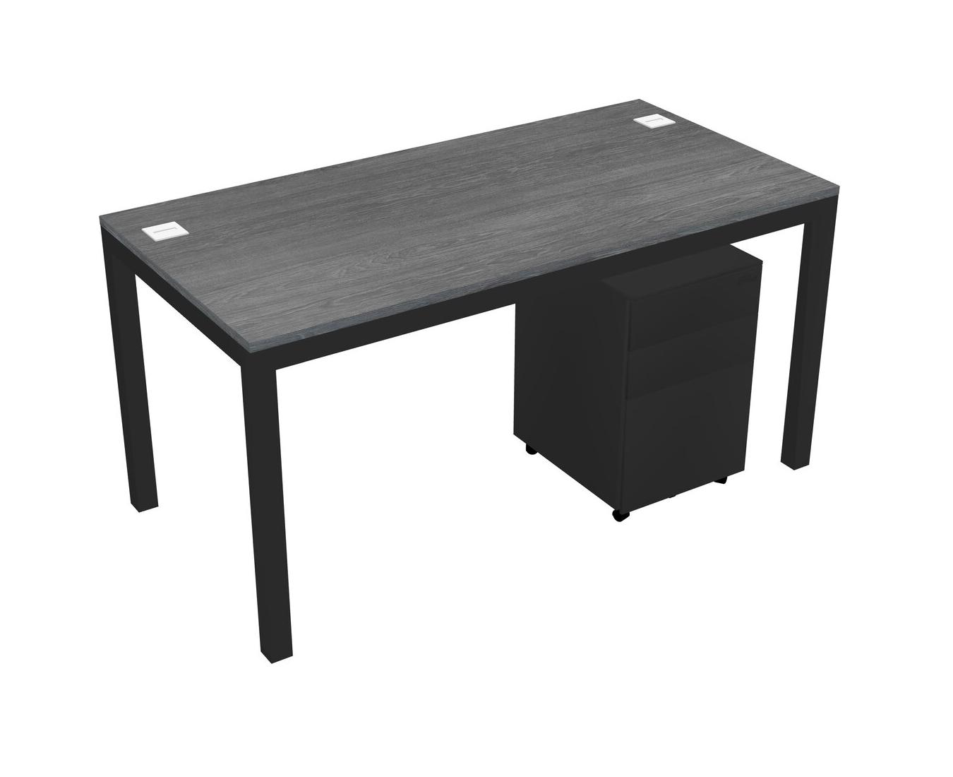Grey Rectangular Office Desk With Metal Mobile Drawers For 1 Persons