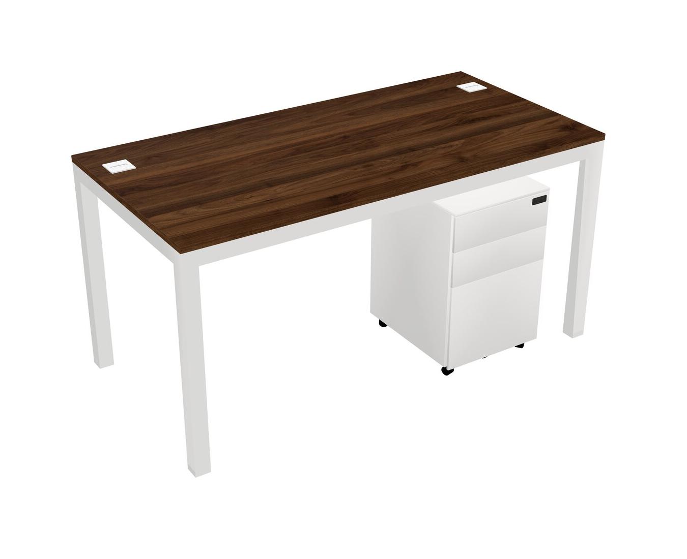 Columbia Walnut Rectangular Office Desk With Metal Mobile Drawers For 1 Persons