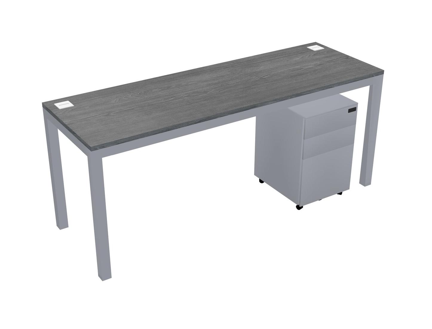 Grey Rectangular Office Desk With Metal Mobile Drawers For 1 Persons