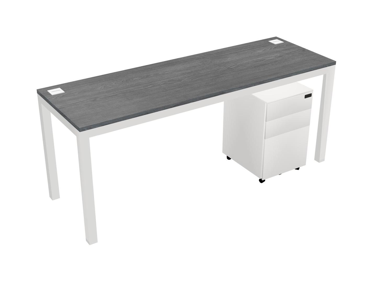 Grey Rectangular Office Desk With Metal Mobile Drawers For 1 Persons