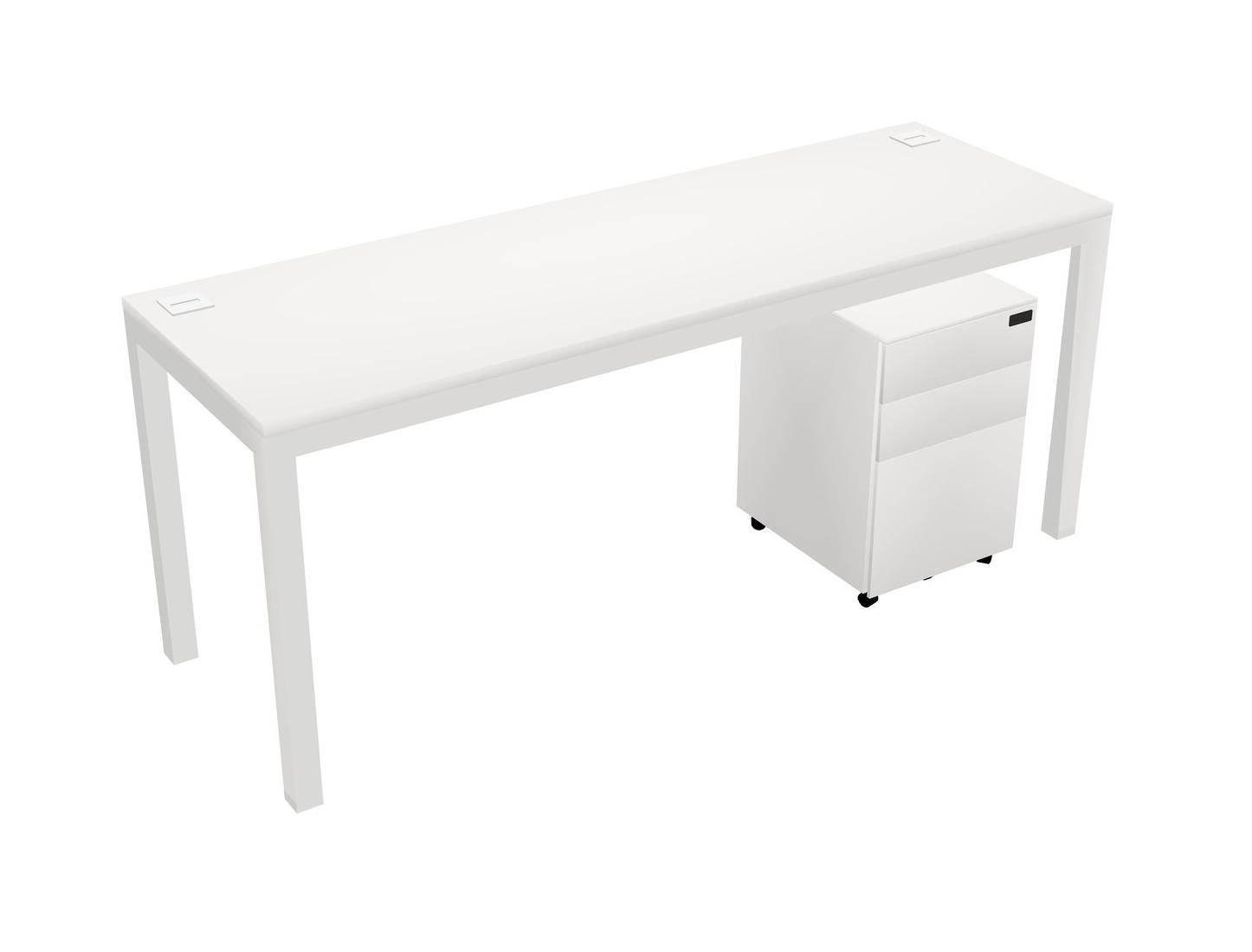 White Rectangular Office Desk With Metal Mobile Drawers For 1 Persons