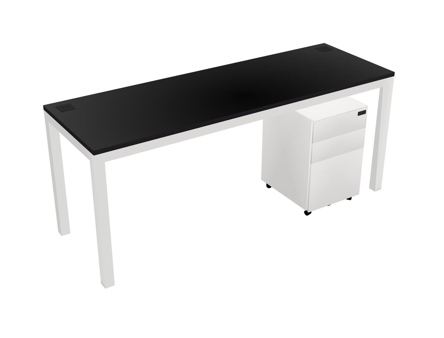Black Rectangular Office Desk With Metal Mobile Drawers For 1 Persons