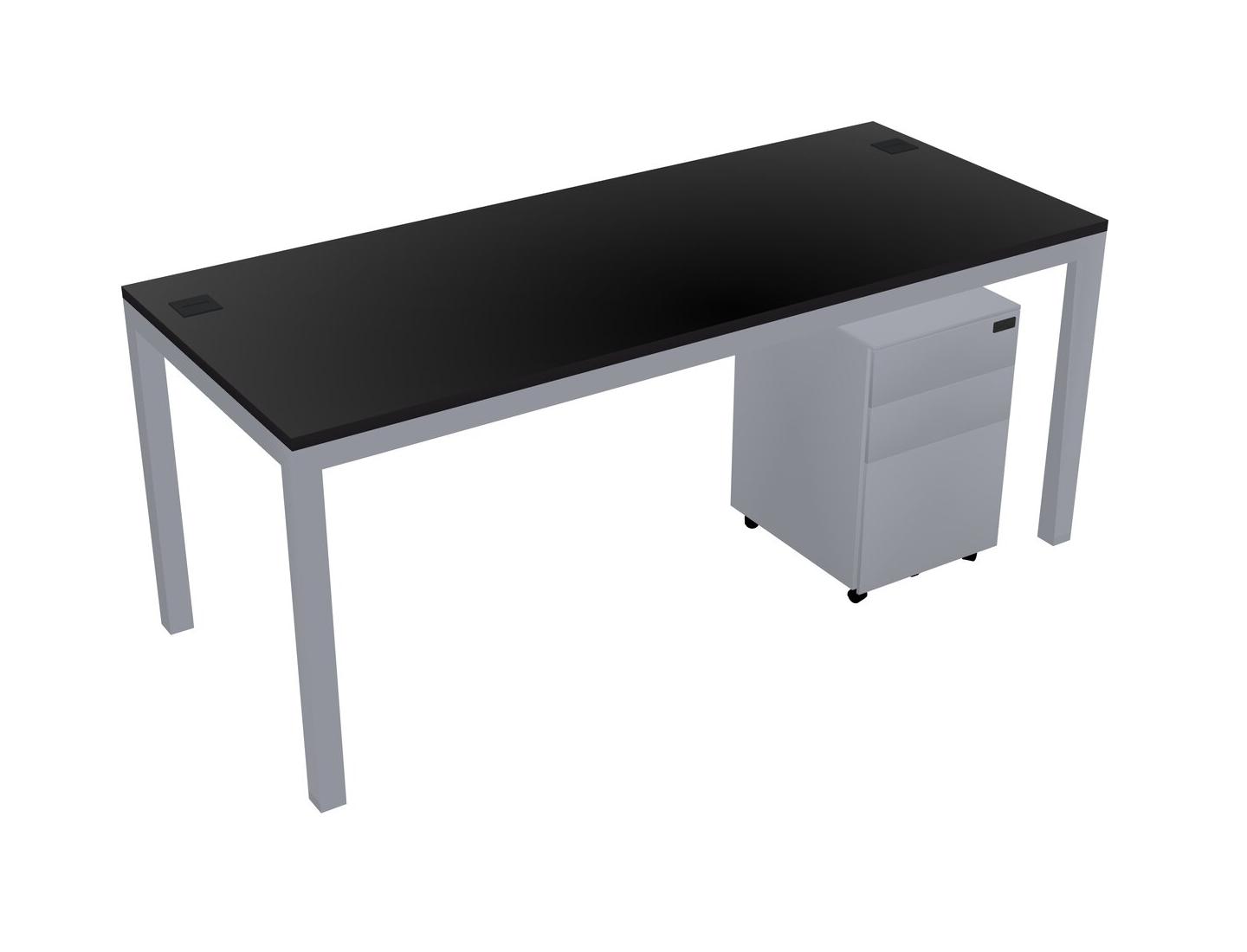 Black Rectangular Office Desk With Metal Mobile Drawers For 1 Persons
