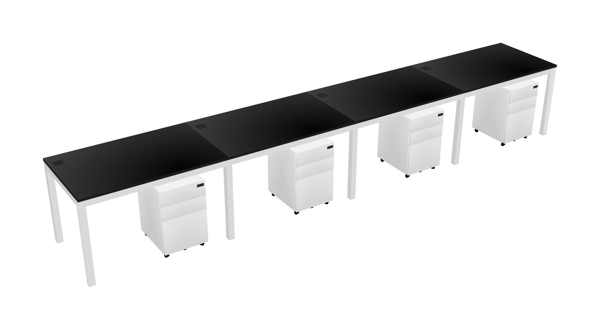 Black Rectangular Office Desk With Metal Mobile Drawers For 4 Persons