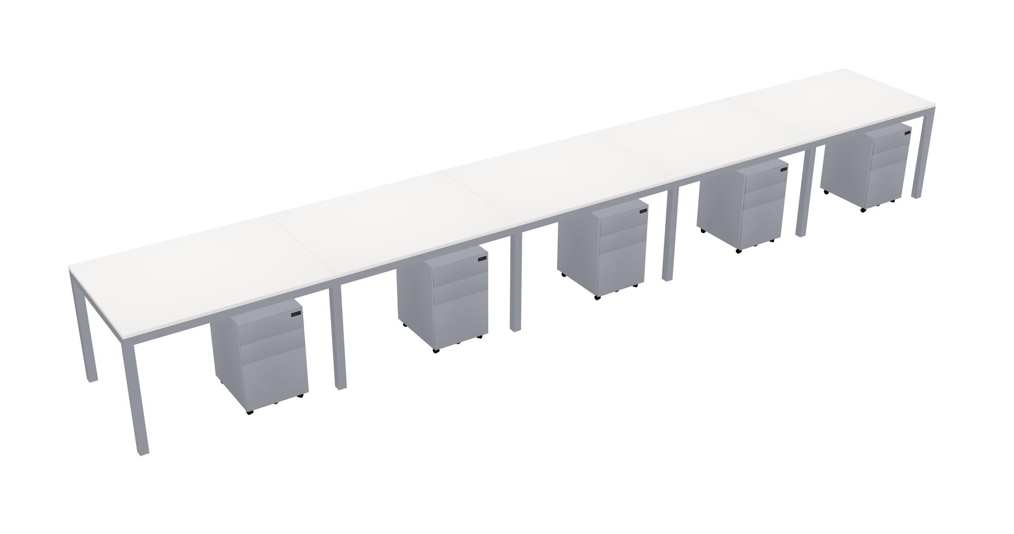 White Rectangular Office Desk With Metal Mobile Drawers For 5 Persons