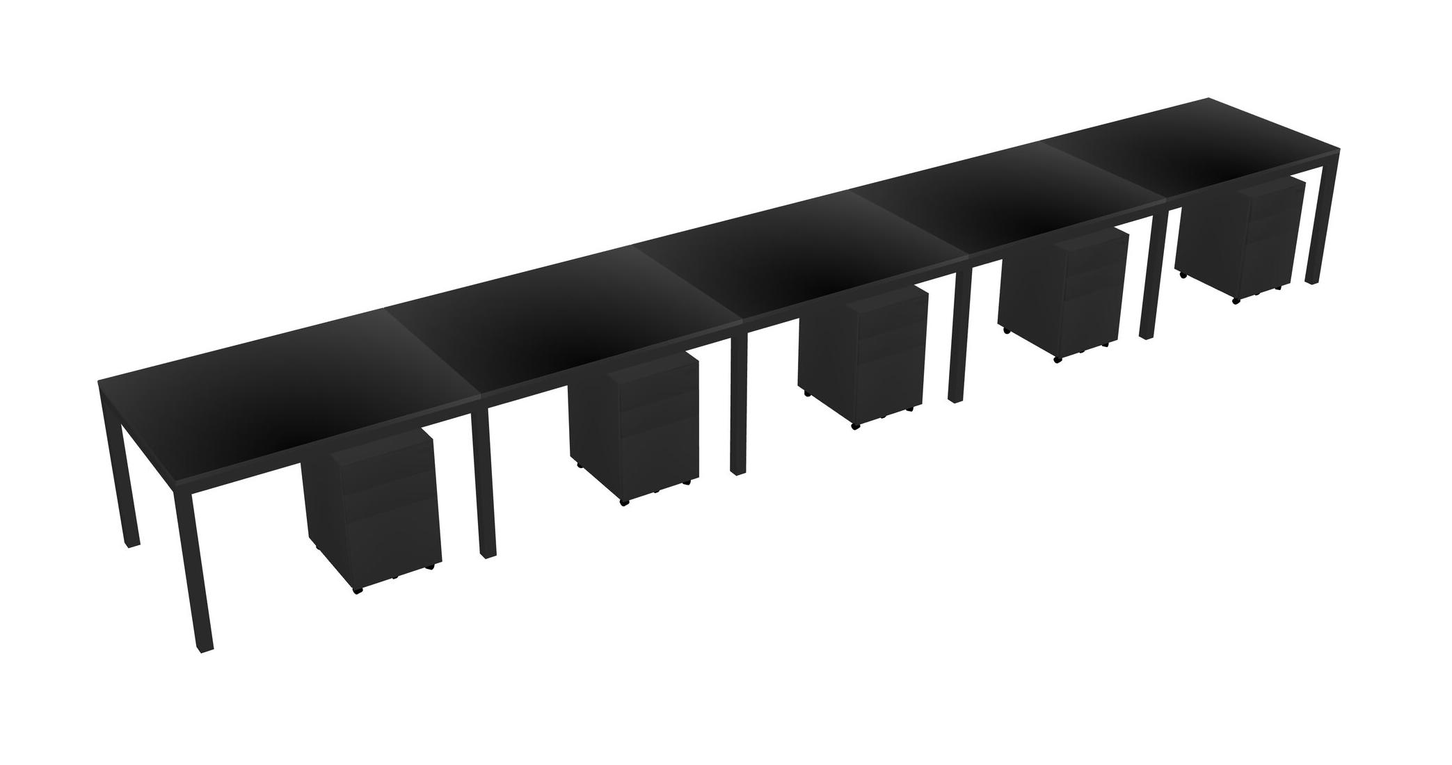 Black Rectangular Office Desk With Metal Mobile Drawers For 5 Persons