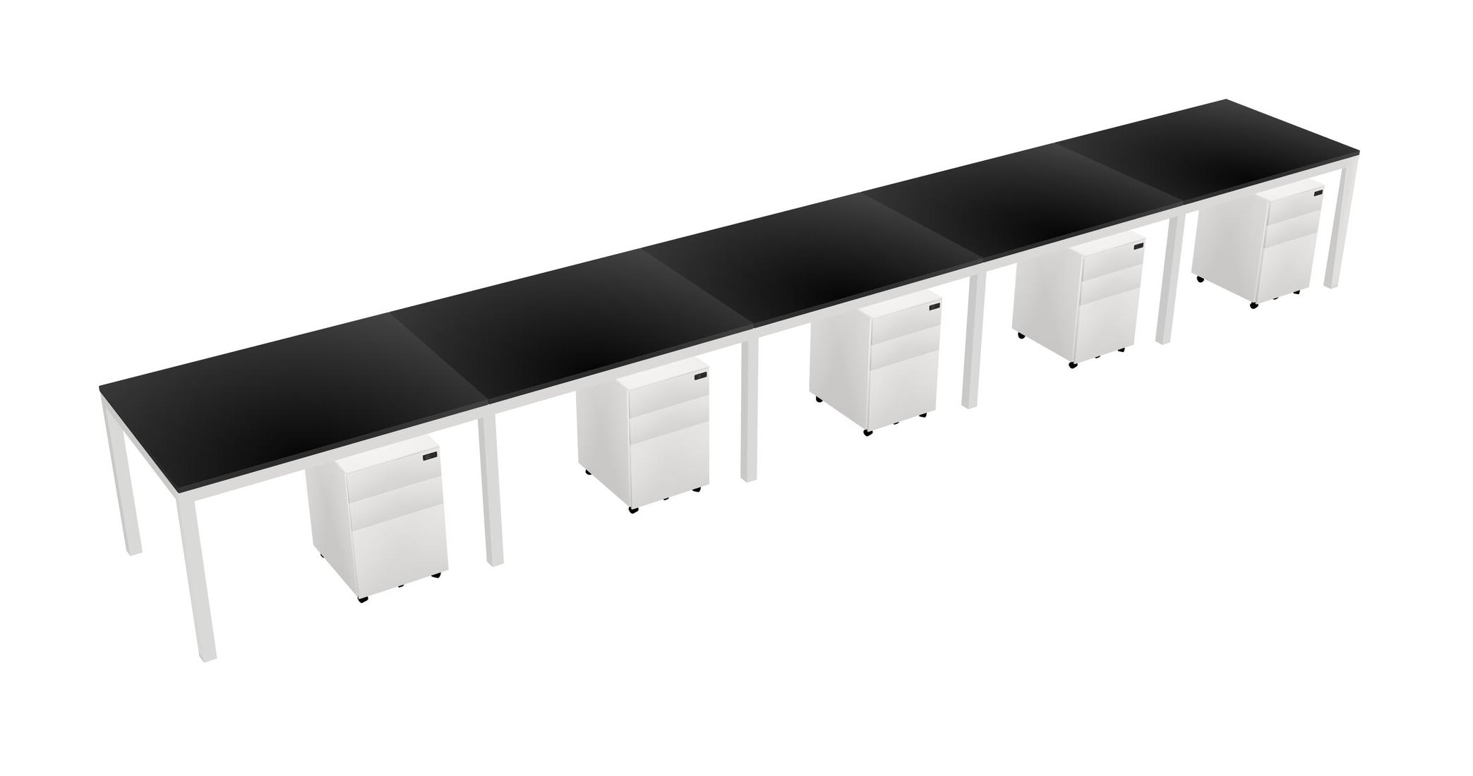 Black Rectangular Office Desk With Metal Mobile Drawers For 5 Persons