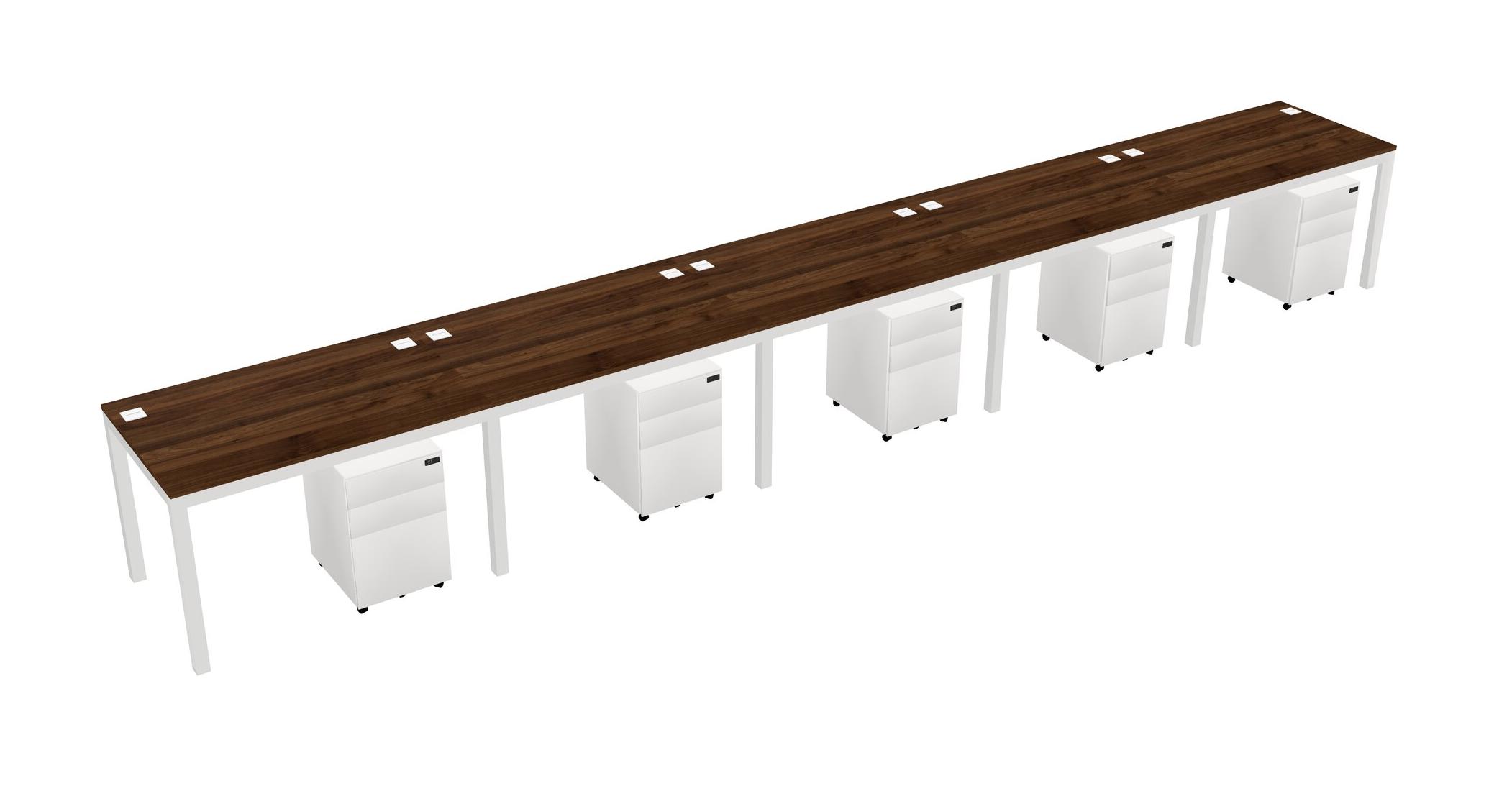 Columbia Walnut Rectangular Office Desk With Metal Mobile Drawers For 5 Persons