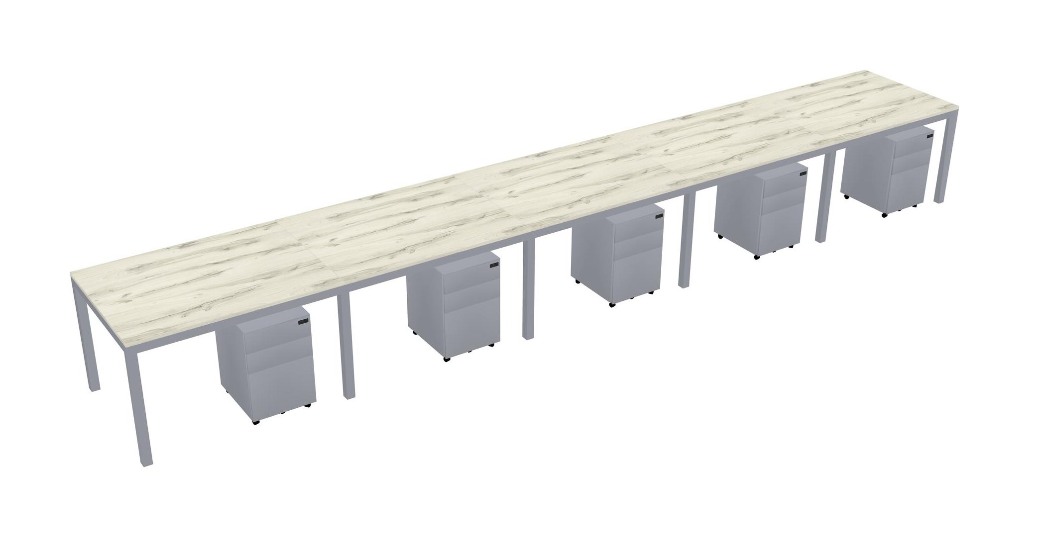 Heinne Holz Rectangular Office Desk With Metal Mobile Drawers For 5 Persons