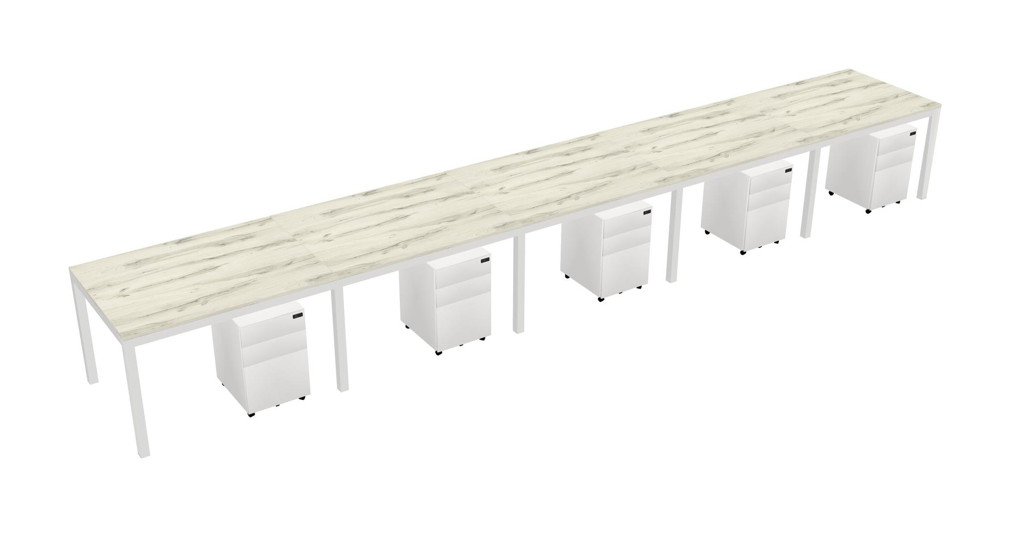 Heinne Holz Rectangular Office Desk With Metal Mobile Drawers For 5 Persons