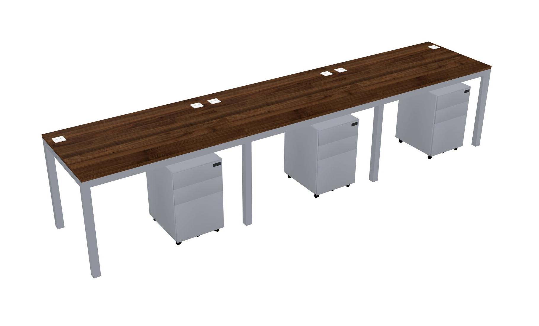 Columbia Walnut Rectangular Office Desk With Metal Mobile Drawers For 3 Persons