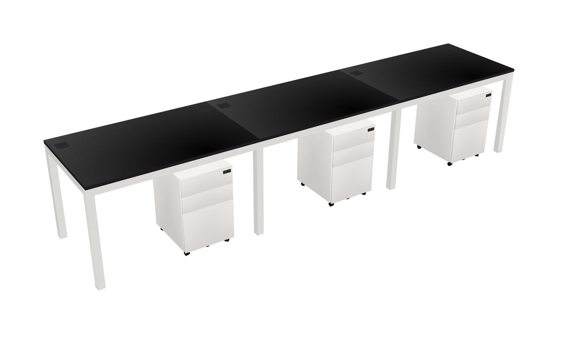 Black Rectangular Office Desk With Metal Mobile Drawers For 3 Persons