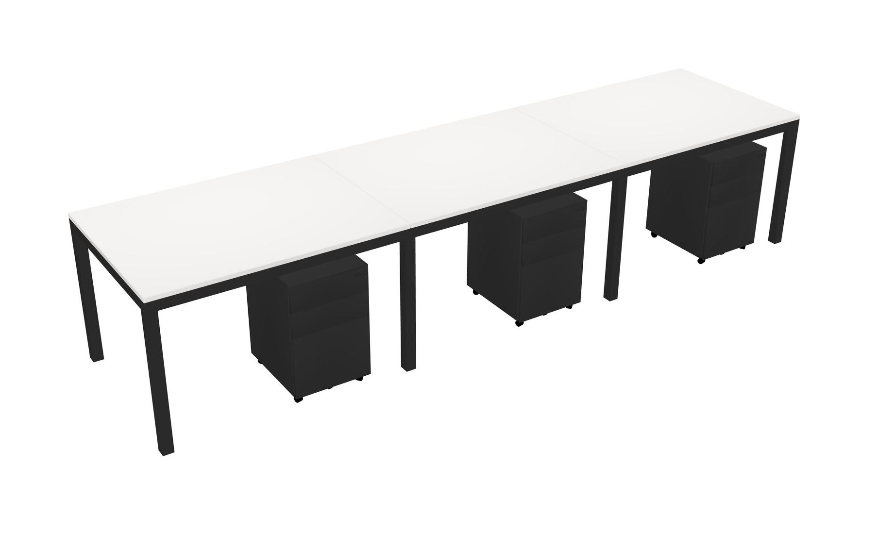 White Rectangular Office Desk With Metal Mobile Drawers For 3 Persons
