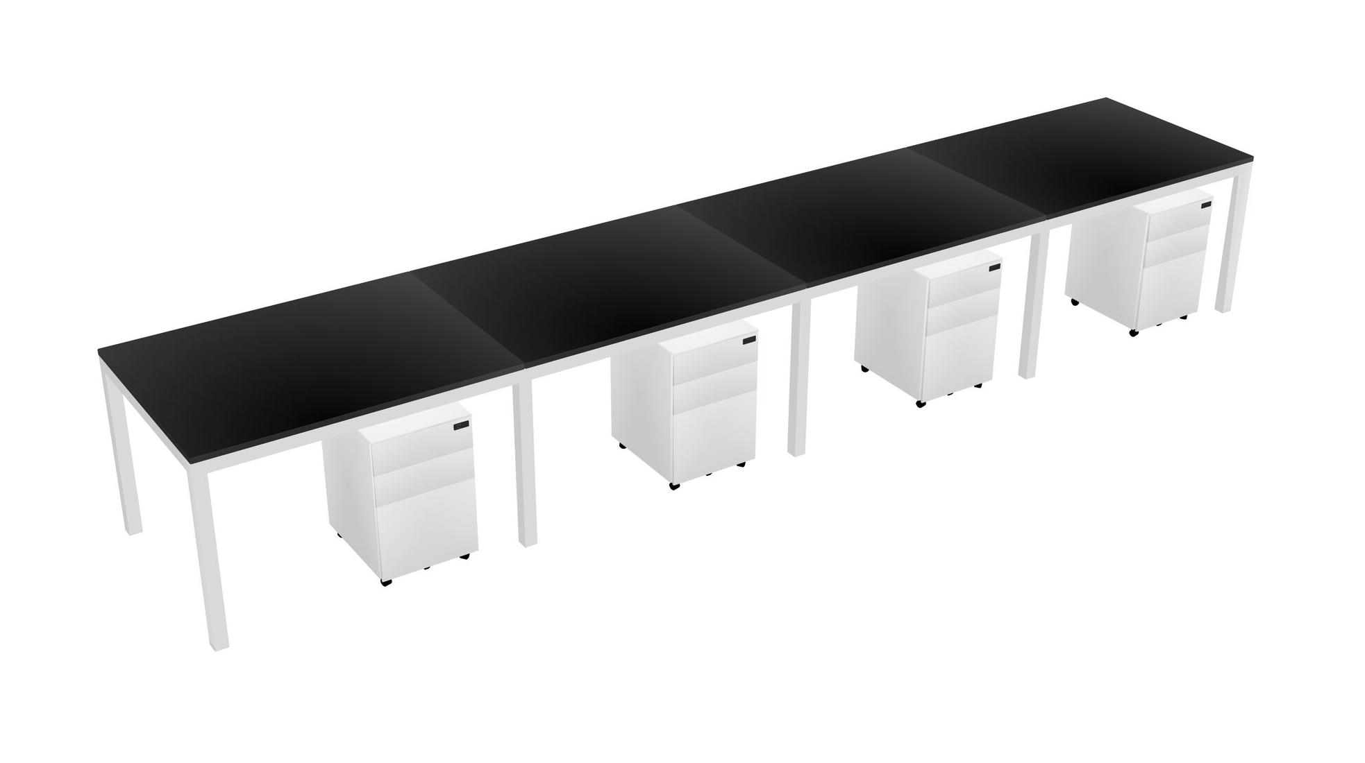 Black Rectangular Office Desk With Metal Mobile Drawers For 4 Persons