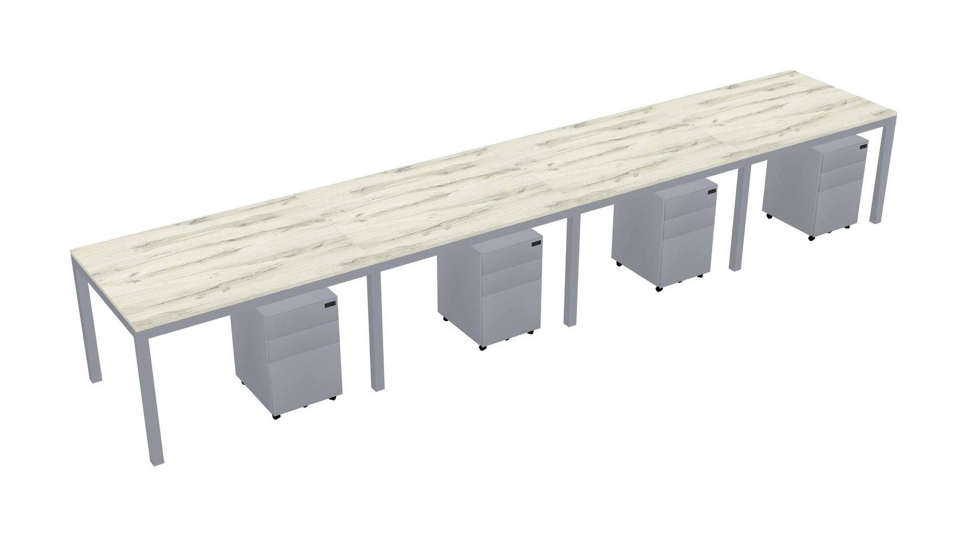 Heinne Holz Rectangular Office Desk With Metal Mobile Drawers For 4 Persons
