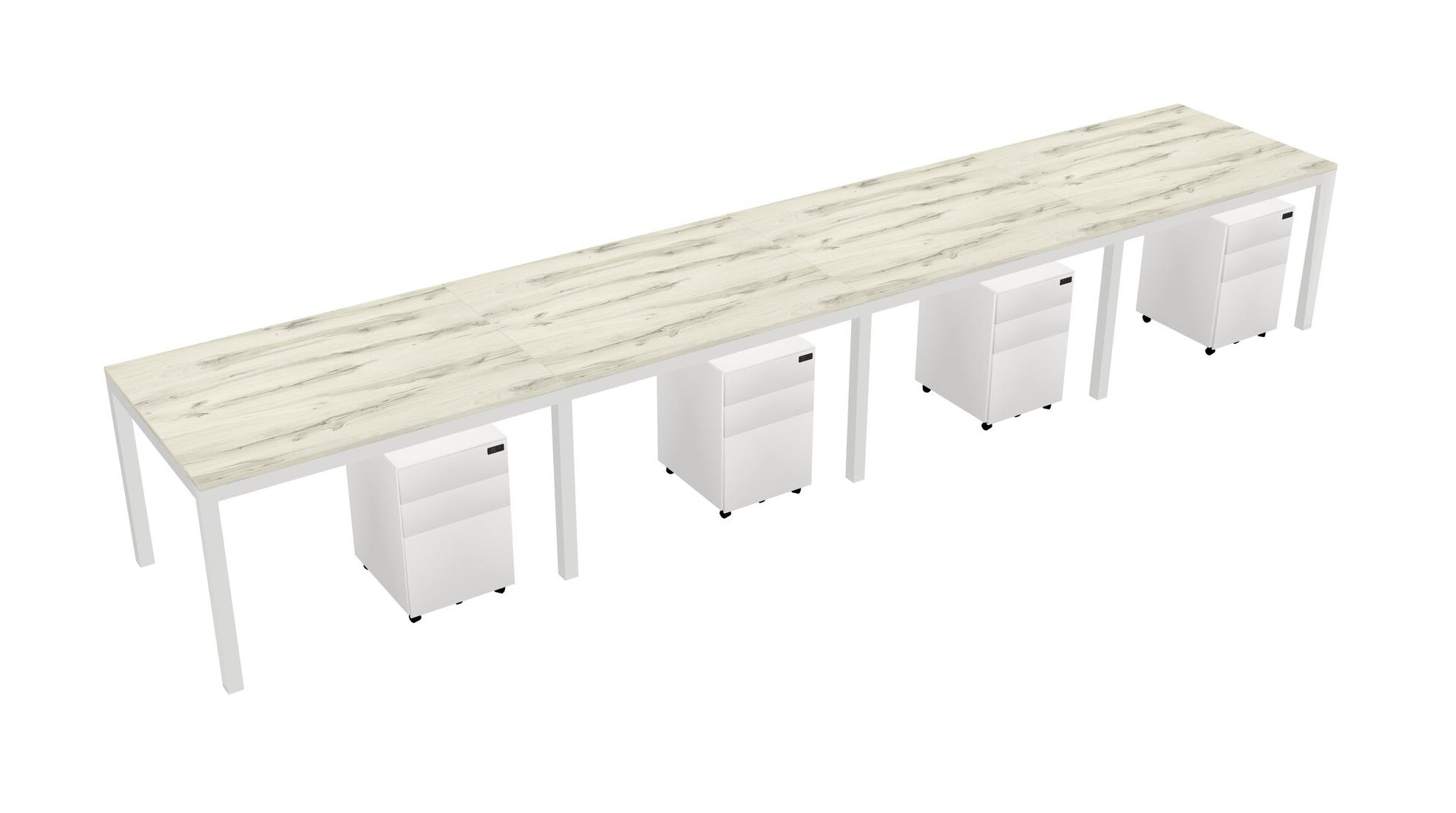 Heinne Holz Rectangular Office Desk With Metal Mobile Drawers For 4 Persons