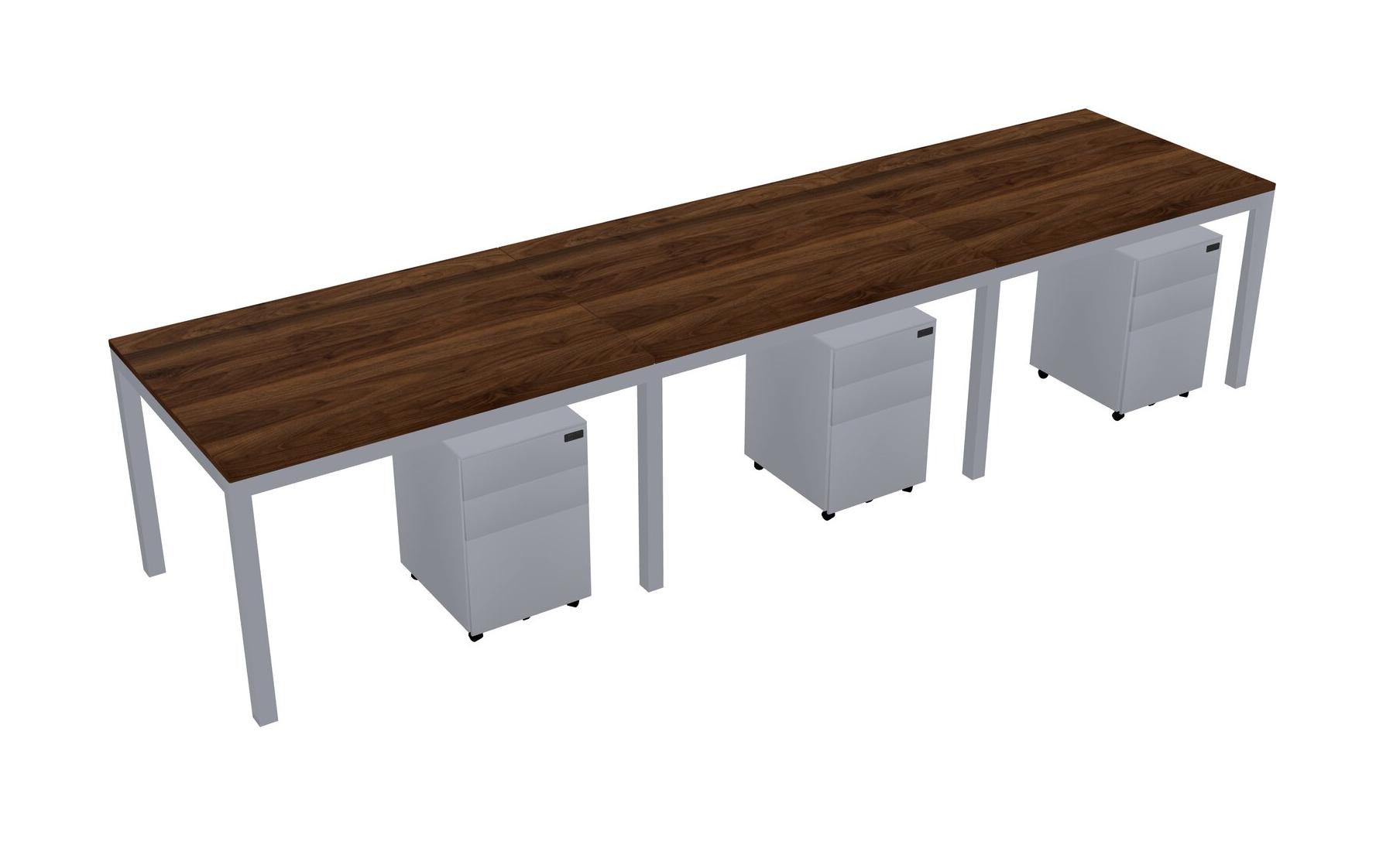 Columbia Walnut Rectangular Office Desk With Metal Mobile Drawers For 3 Persons