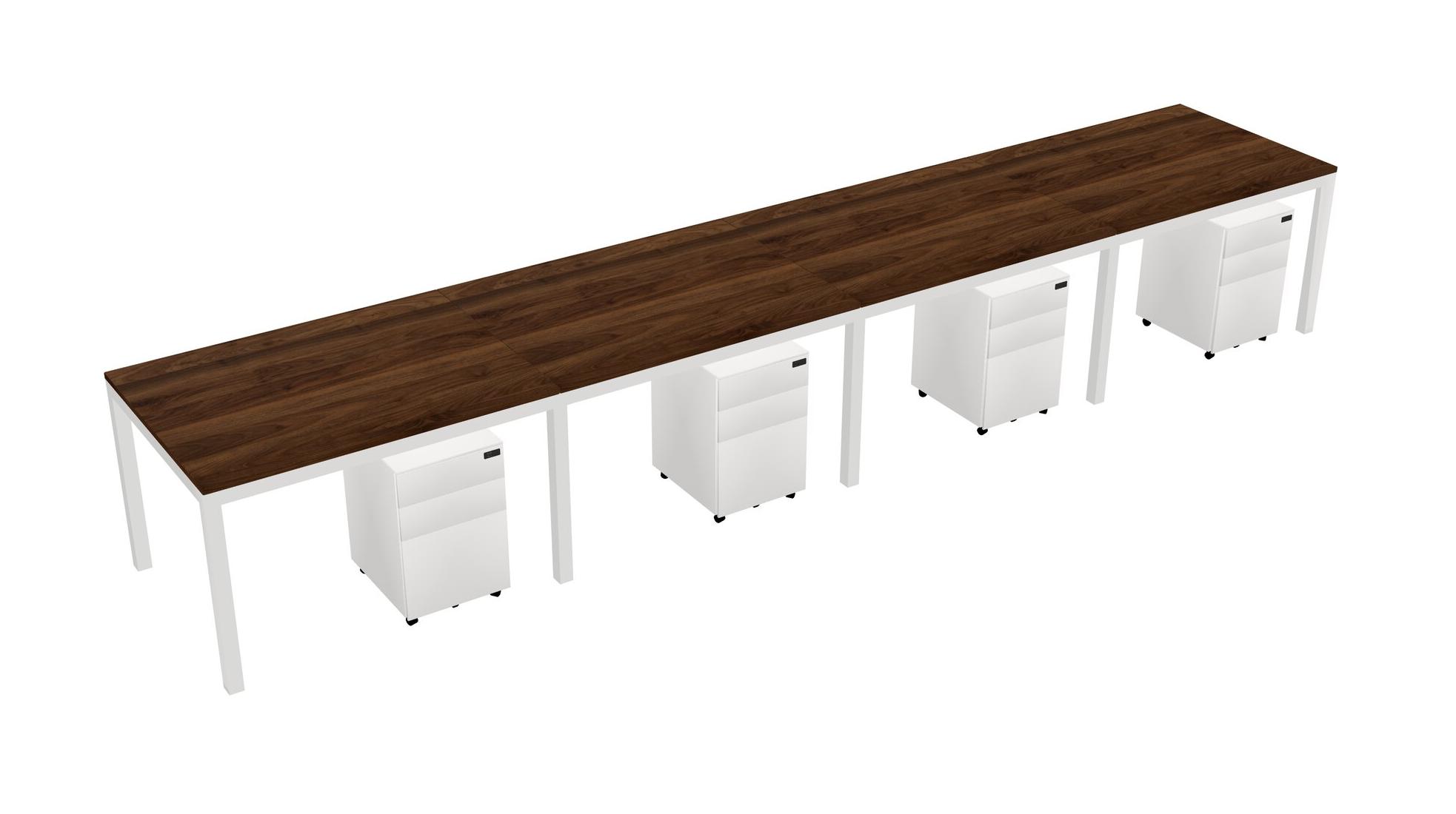 Columbia Walnut Rectangular Office Desk With Metal Mobile Drawers For 4 Persons