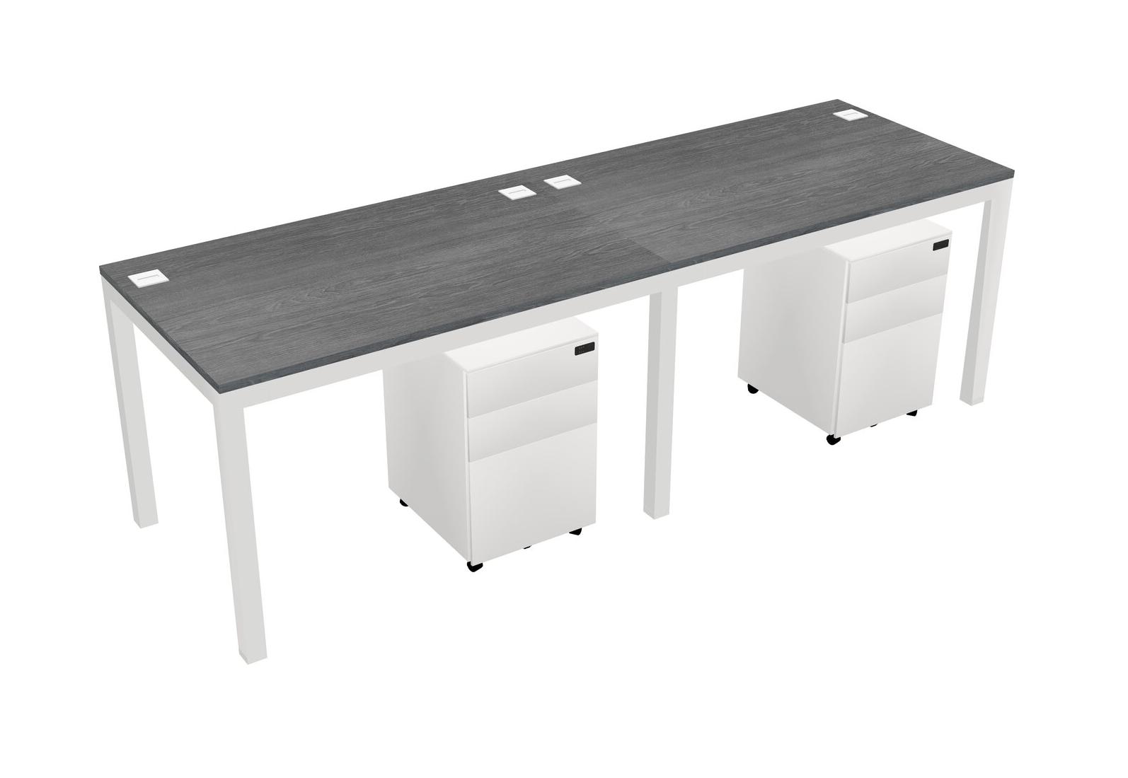 Grey Rectangular Office Desk With Metal Mobile Drawers For 2 Persons