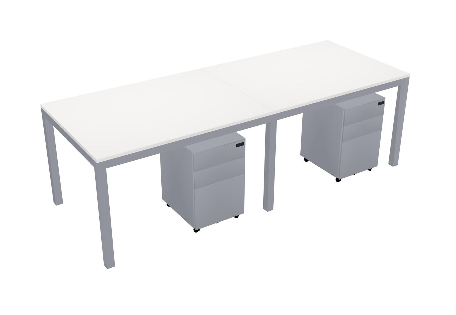 White Rectangular Office Desk With Metal Mobile Drawers For 2 Persons