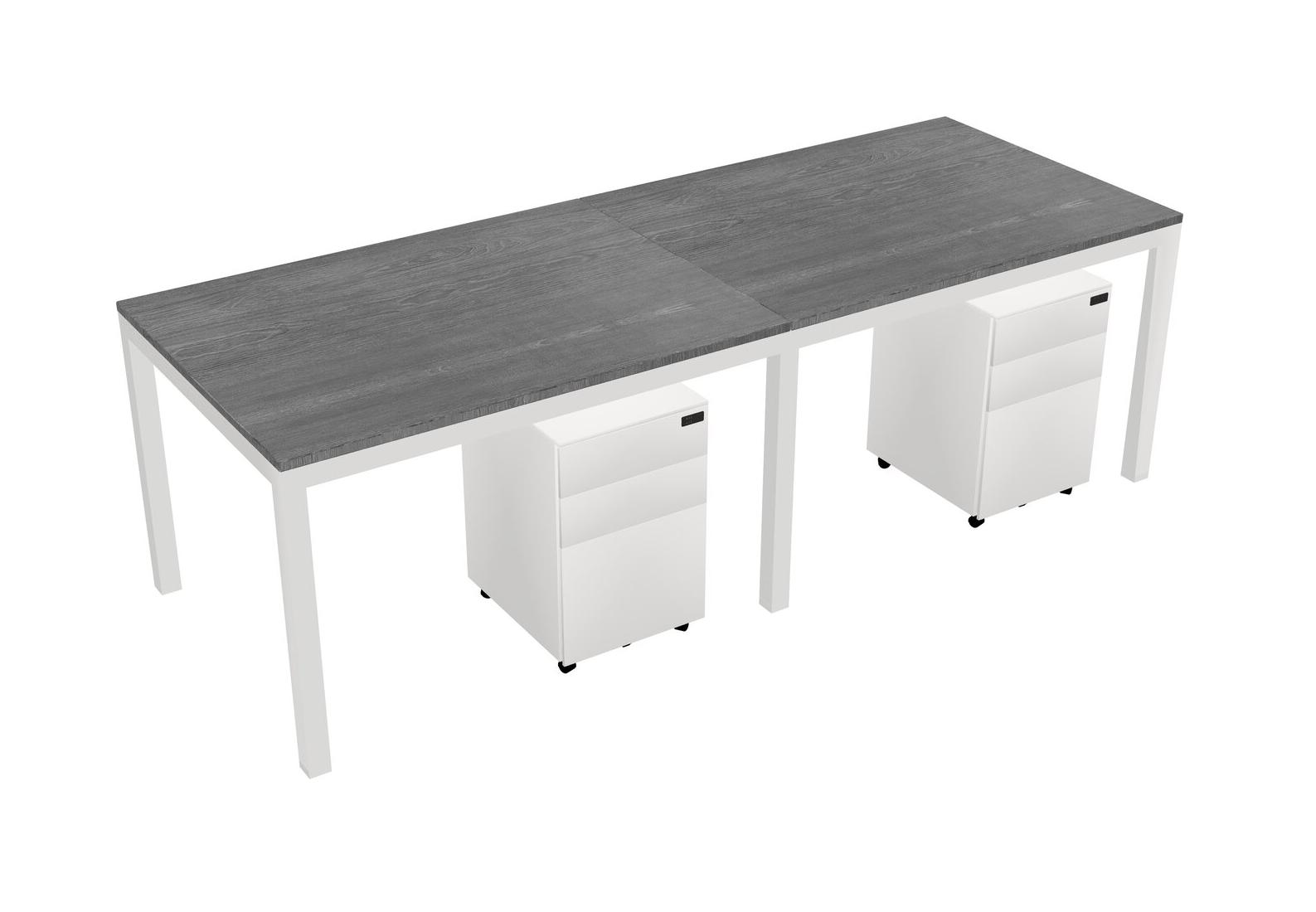 Grey Rectangular Office Desk With Metal Mobile Drawers For 2 Persons