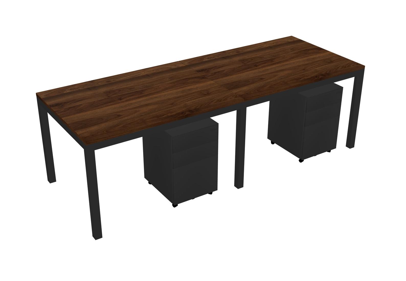 Columbia Walnut Rectangular Office Desk With Metal Mobile Drawers For 2 Persons
