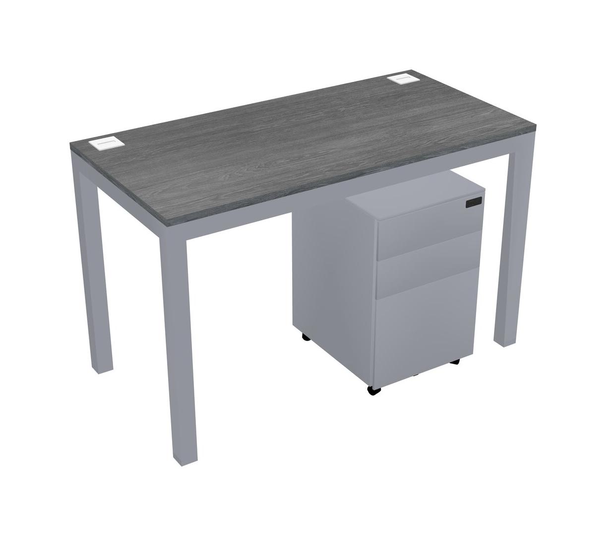 Grey Rectangular Office Desk With Metal Mobile Drawers For 1 Persons