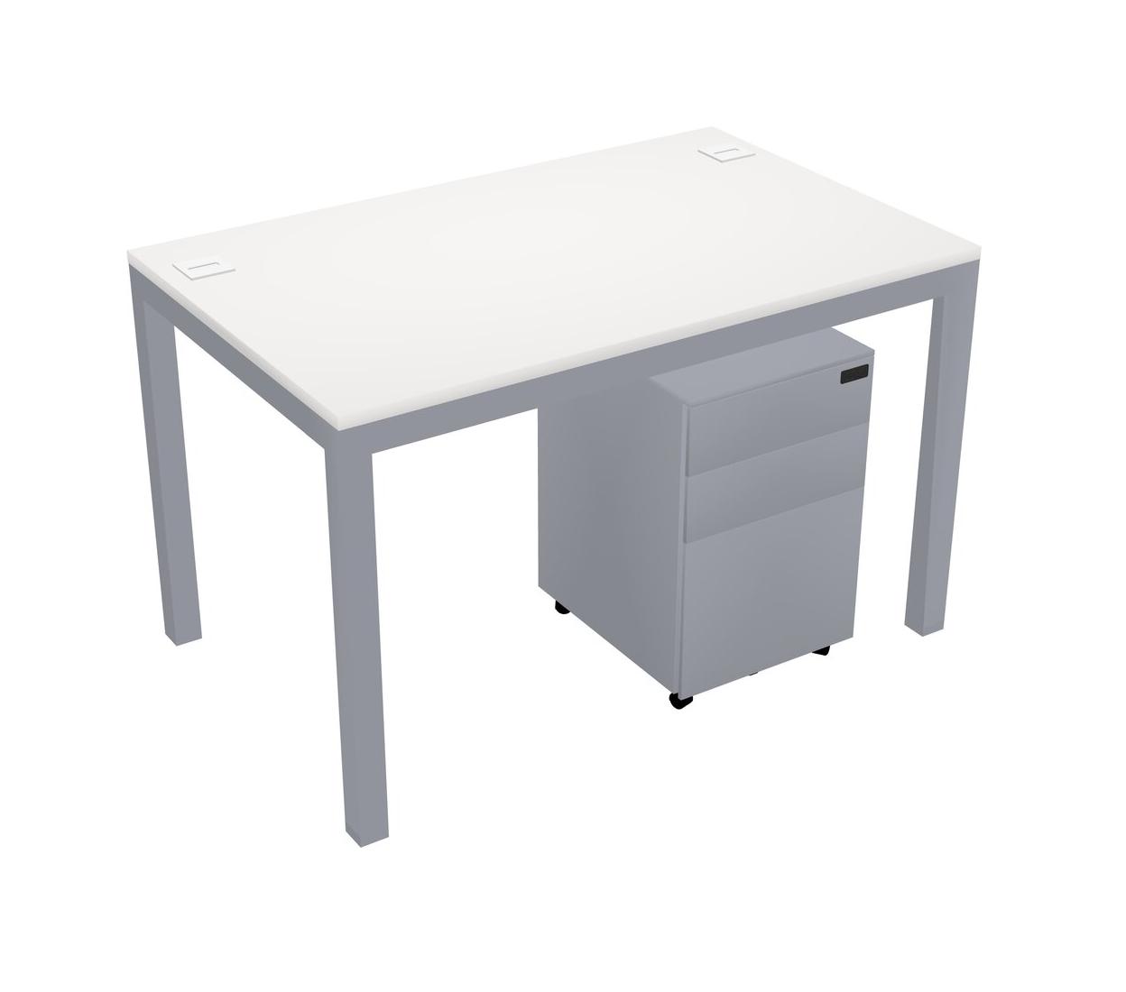 White Rectangular Office Desk With Metal Mobile Drawers For 1 Persons