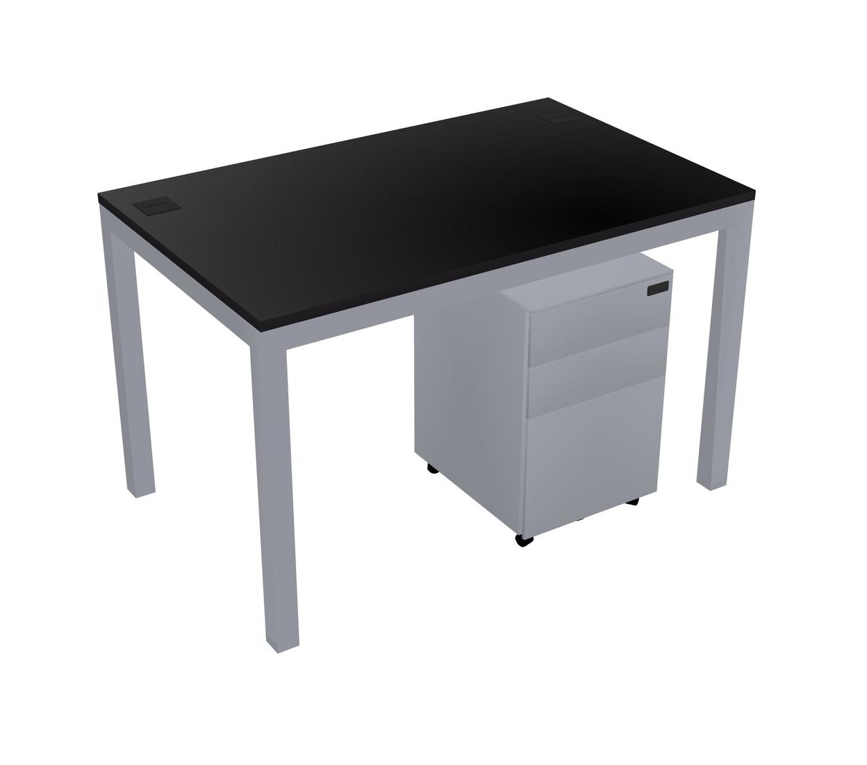 Black Rectangular Office Desk With Metal Mobile Drawers For 1 Persons