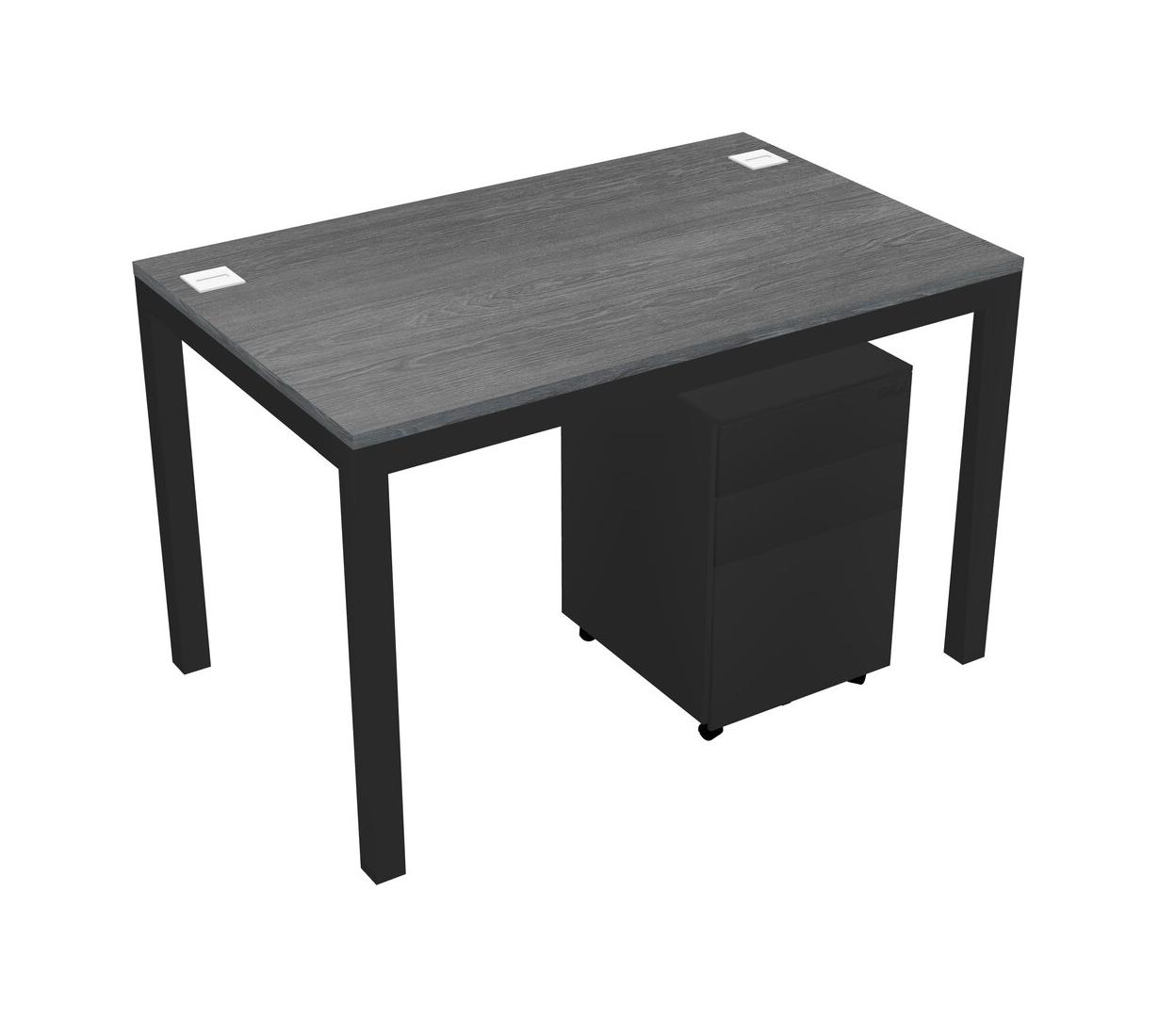 Grey Rectangular Office Desk With Metal Mobile Drawers For 1 Persons