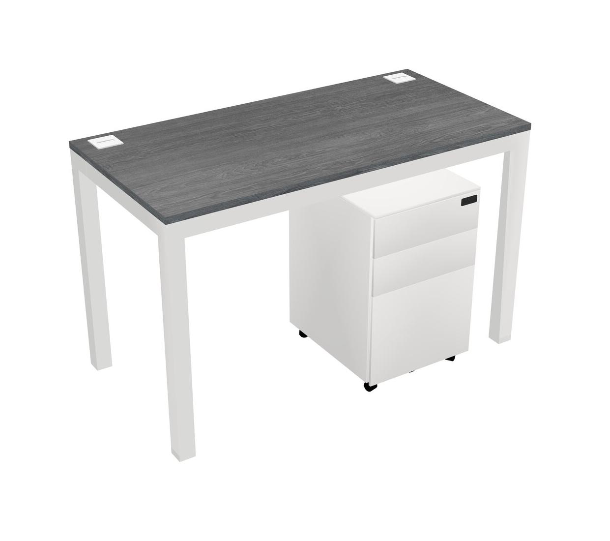 Grey Rectangular Office Desk With Metal Mobile Drawers For 1 Persons