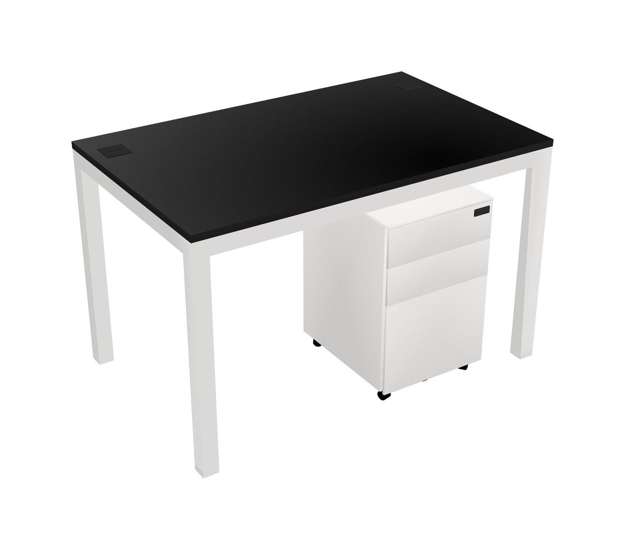 Black Rectangular Office Desk With Metal Mobile Drawers For 1 Persons