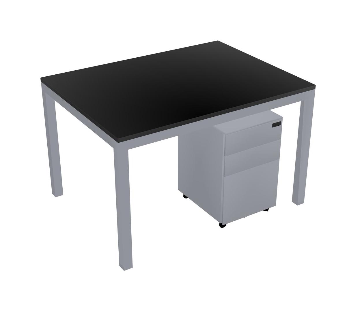 Black Rectangular Office Desk With Metal Mobile Drawers For 1 Persons