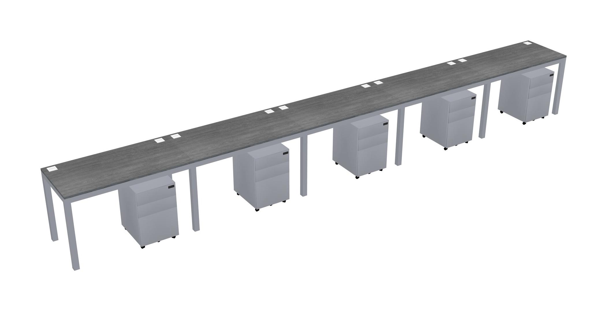 Grey Rectangular Office Desk With Metal Mobile Drawers For 5 Persons