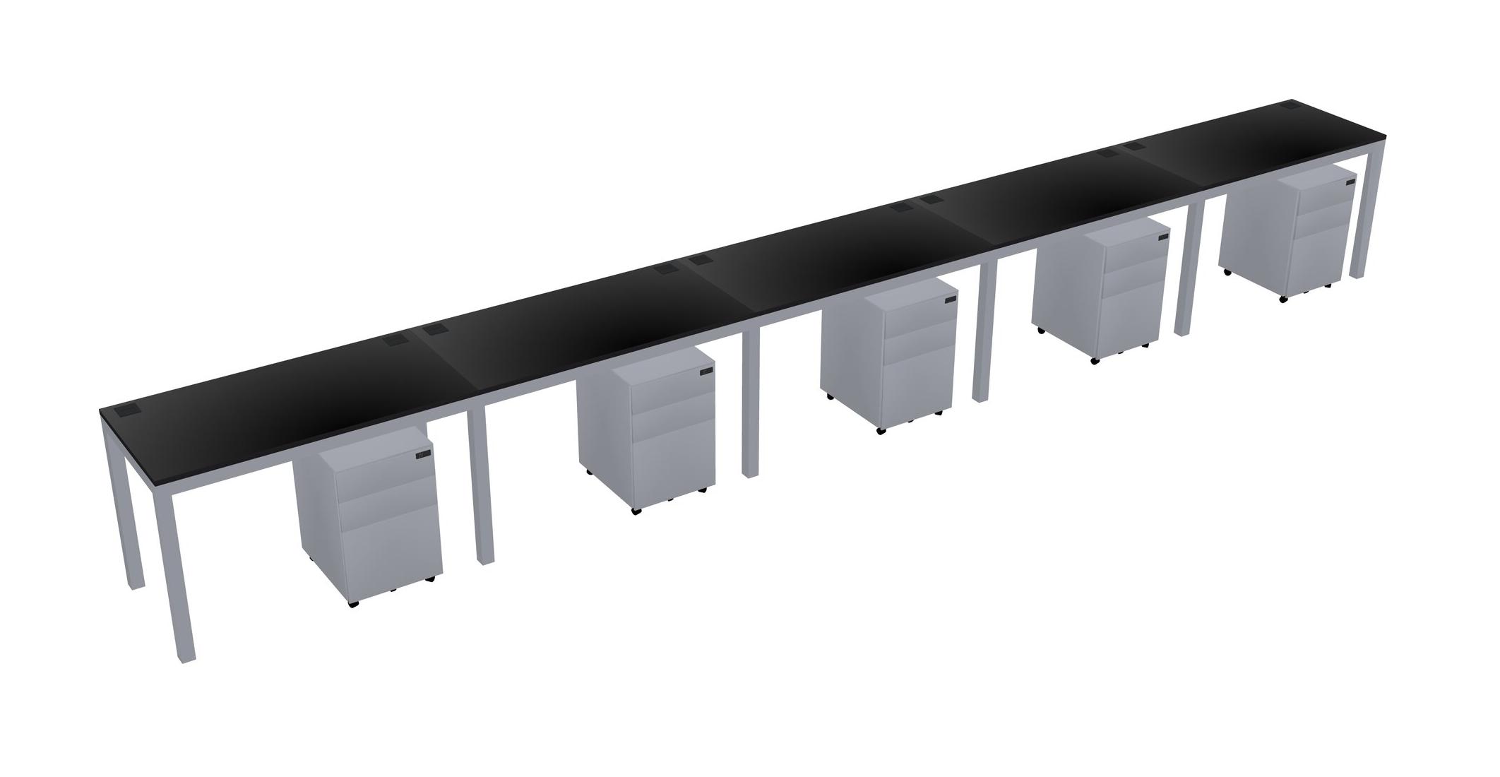 Black Rectangular Office Desk With Metal Mobile Drawers For 5 Persons