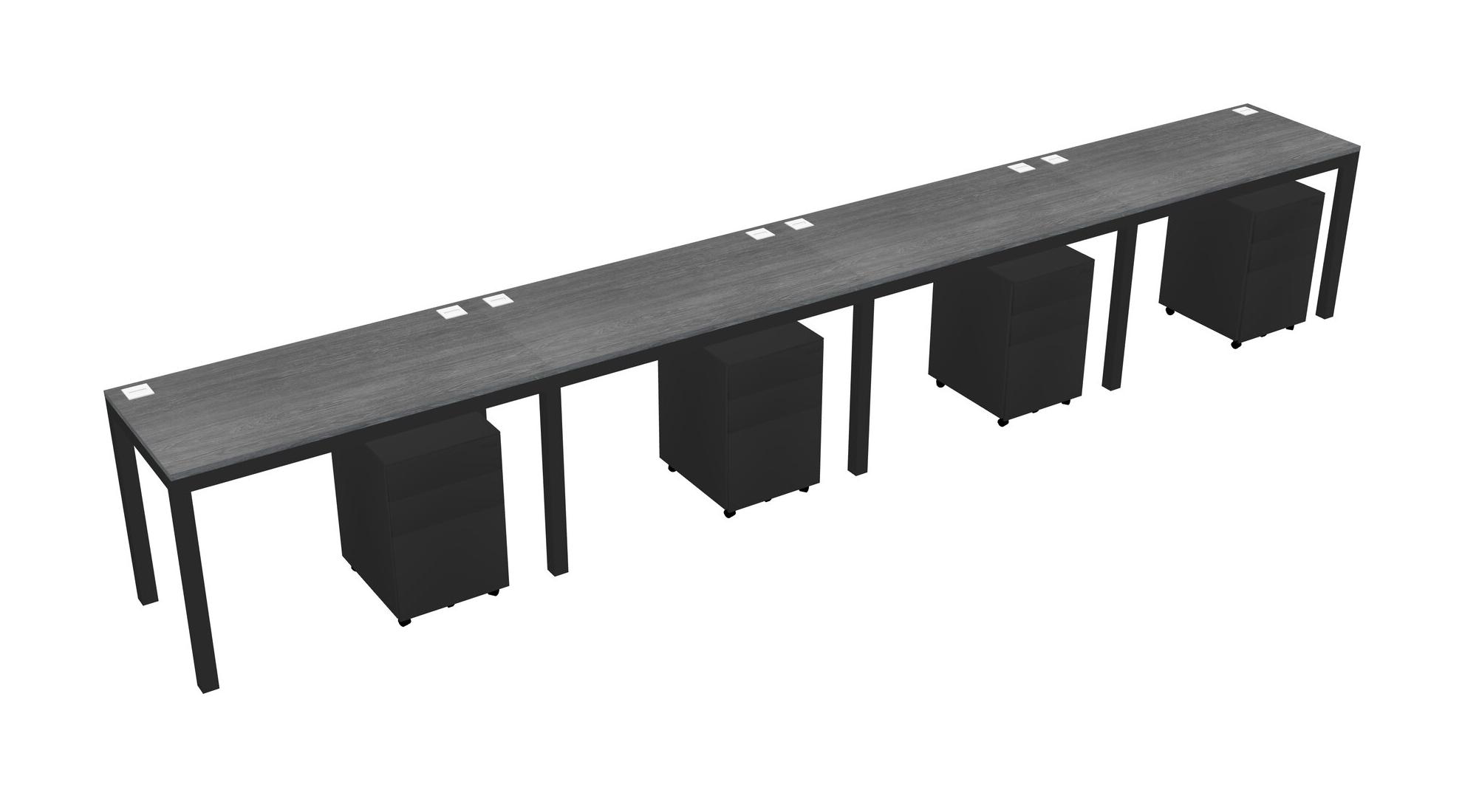 Grey Rectangular Office Desk With Metal Mobile Drawers For 4 Persons