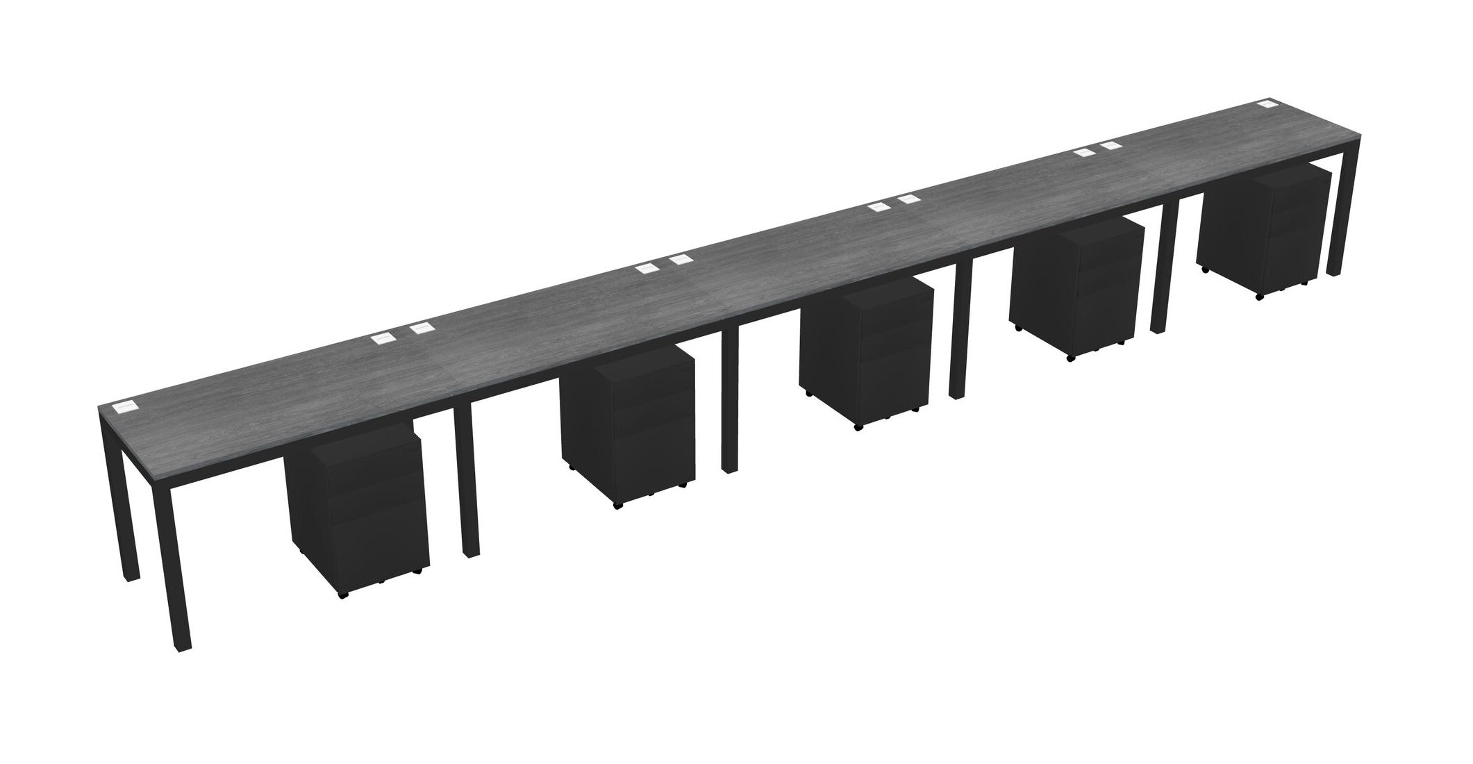 Grey Rectangular Office Desk With Metal Mobile Drawers For 5 Persons