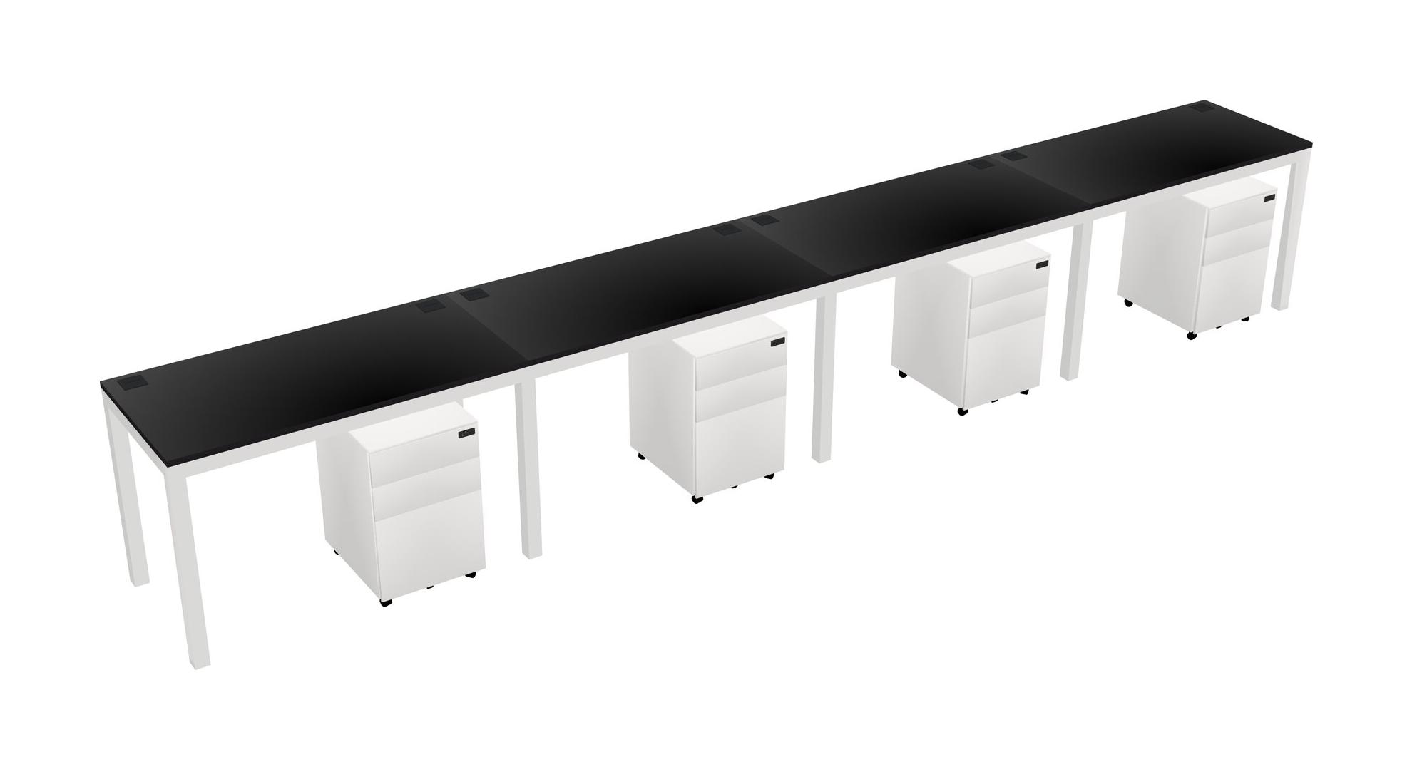 Black Rectangular Office Desk With Metal Mobile Drawers For 4 Persons