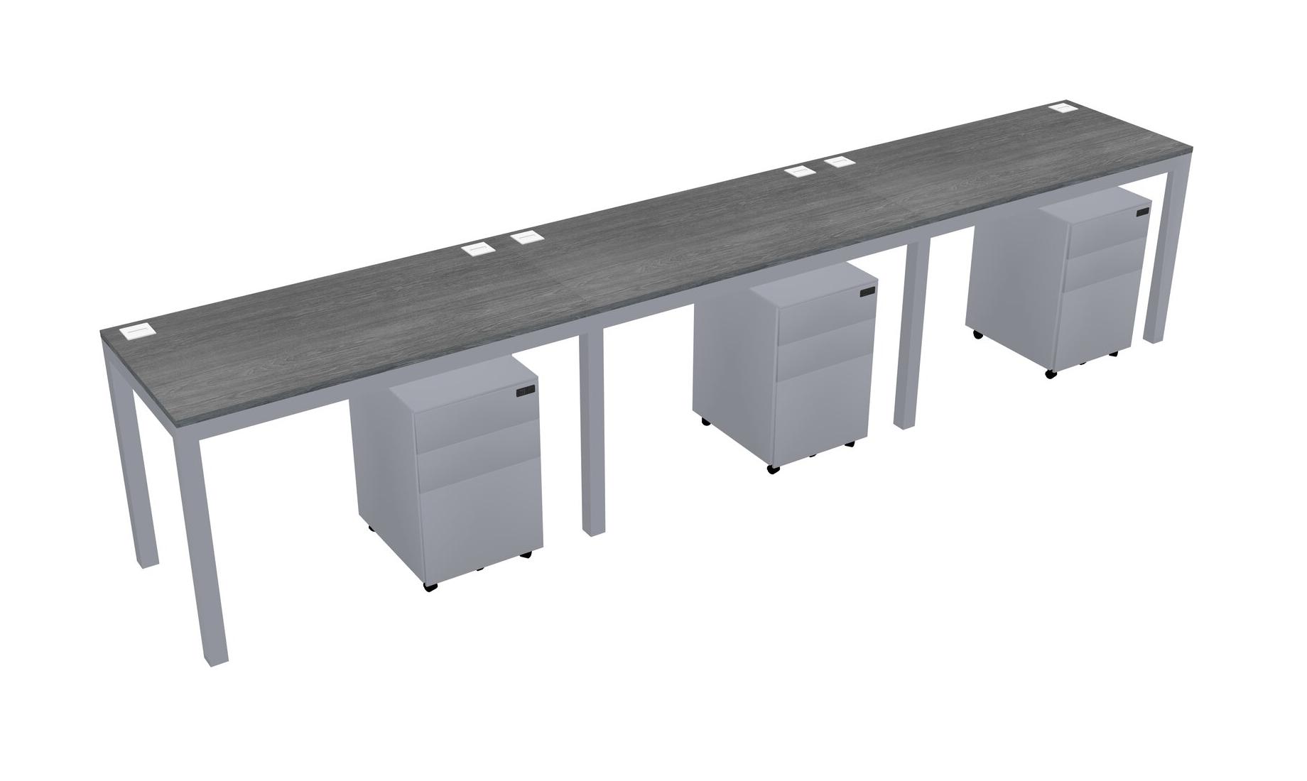 Grey Rectangular Office Desk With Metal Mobile Drawers For 3 Persons