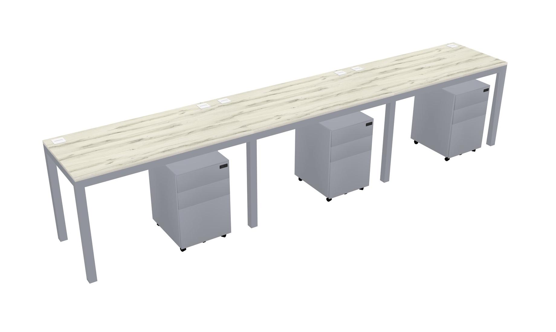 Heinne Holz Rectangular Office Desk With Metal Mobile Drawers For 3 Persons
