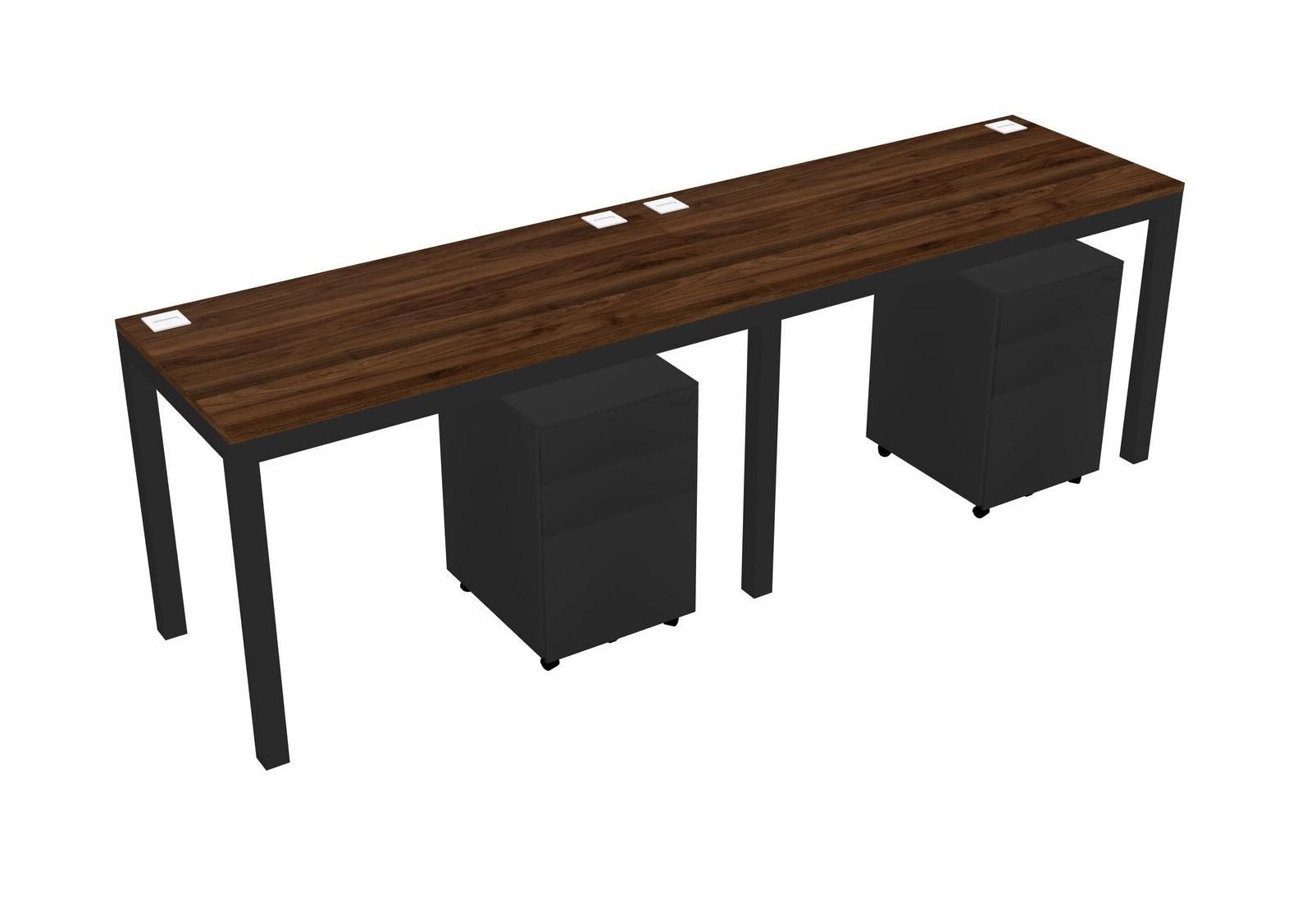 Columbia Walnut Rectangular Office Desk With Metal Mobile Drawers For 2 Persons