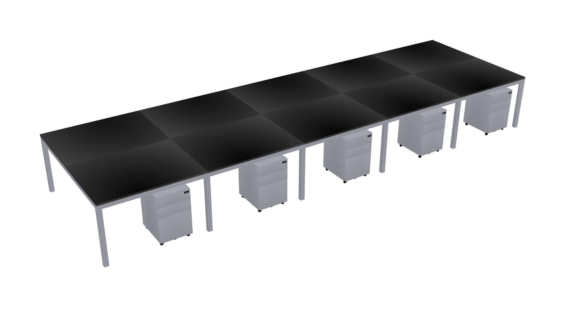 Black Shared Rectangular Office Desk With Metal Mobile Drawers For 10 Persons