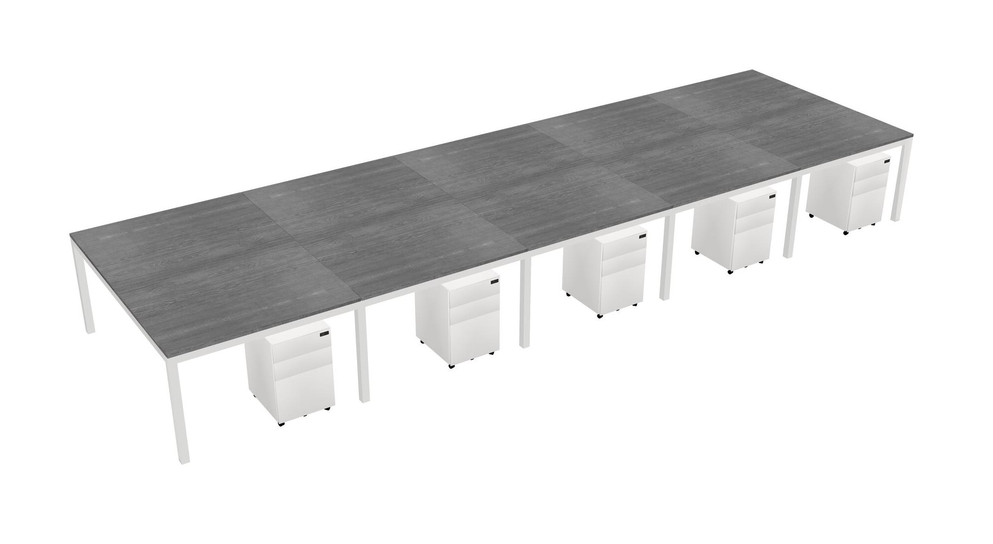 Grey Shared Rectangular Office Desk With Metal Mobile Drawers For 10 Persons