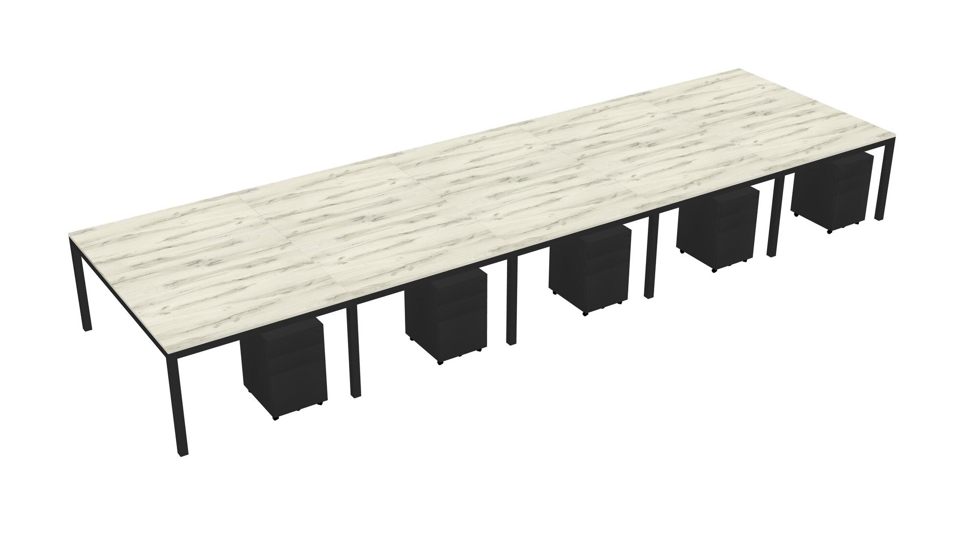 Heinne Holz Shared Rectangular Office Desk With Metal Mobile Drawers For 10 Persons