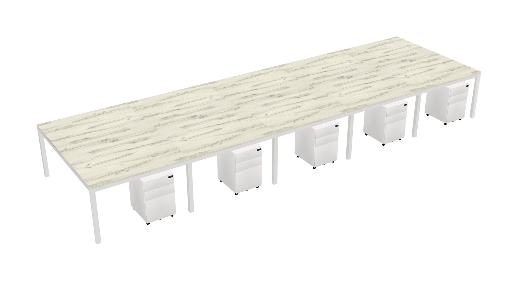 Heinne Holz Shared Rectangular Office Desk With Metal Mobile Drawers For 10 Persons