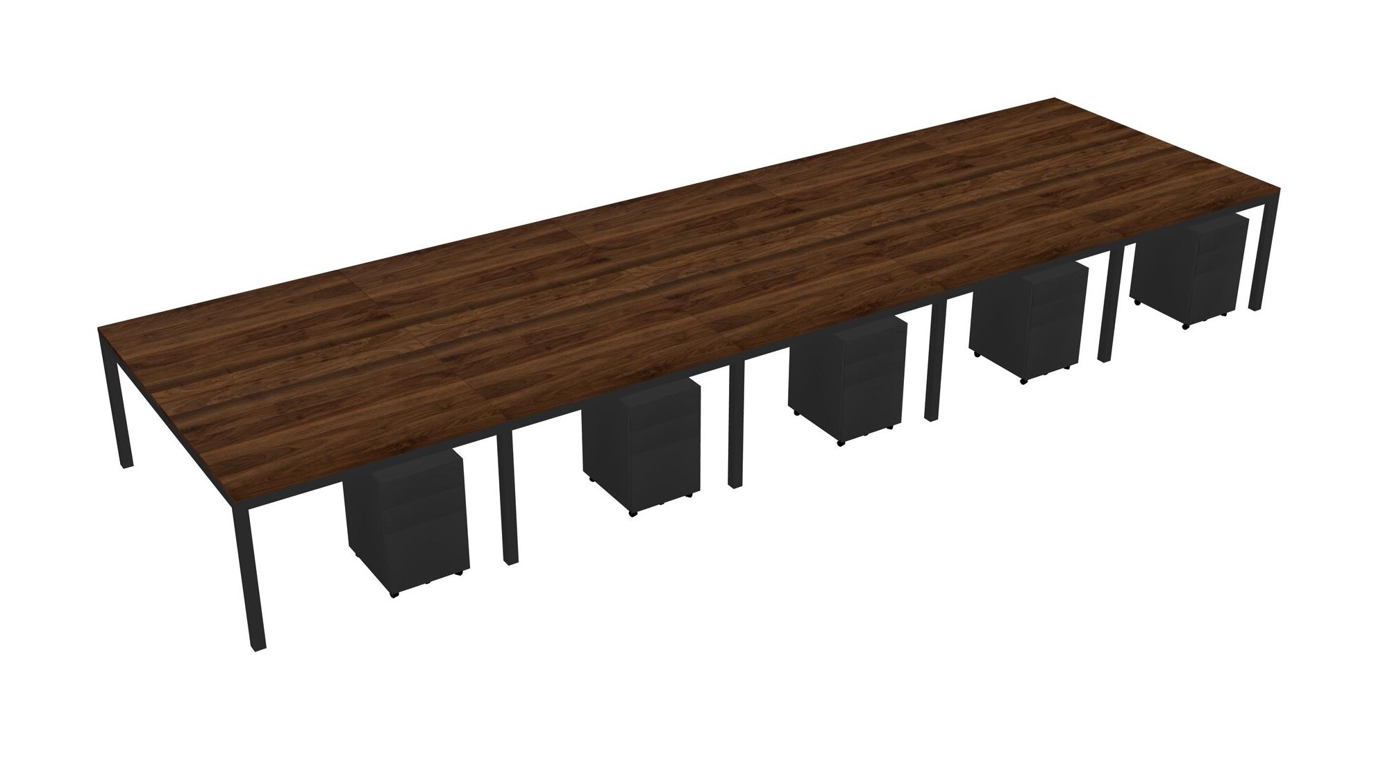 Columbia Walnut Shared Rectangular Office Desk With Metal Mobile Drawers For 10 Persons