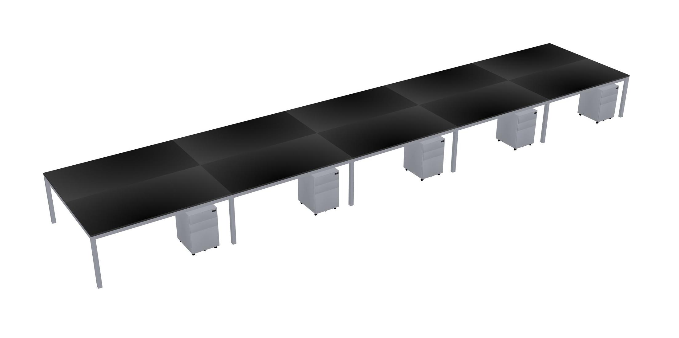 Black Shared Rectangular Office Desk With Metal Mobile Drawers For 10 Persons